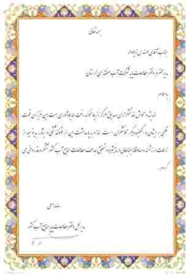 به گزارش روابط عمومی شرکت آب منطقه ای لرستان ، در این لوح آمده است : اندیشه و تلاش خدمتگزاران صدیق هرگز از یاد نخواهد رفت اما یادآوری همت این عزیزان قوت قلبی بر ایشان و انگیزه دیگر تلاشگران است . لذا به پاسداشت این از خود گذشتگی و ایثار ، بدینوسیله از زحمات ارزشمند و صادقانه جنابعالی در پیشبرد و تحقق اهداف مطالعات منابع آب کشور تشکر و قدردانی می گردد .